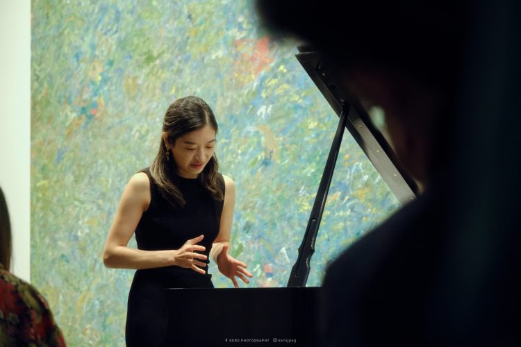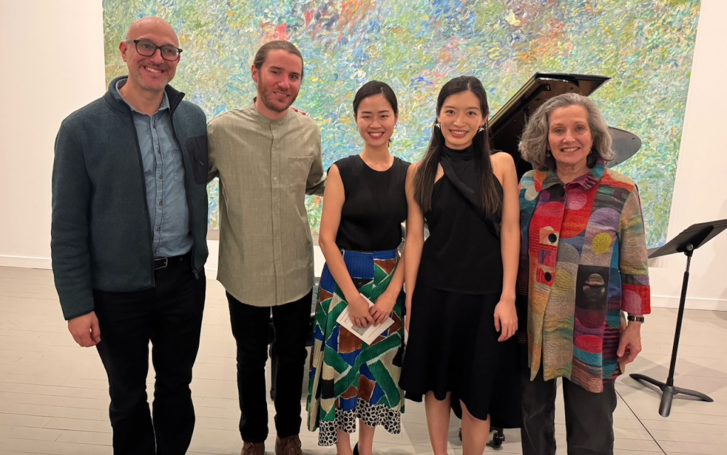 Featured in concert at the Milton Resnick and Pat Passlof Foundation on the Lower East Side in New York last week —Three MSM 2024 doctoral graduates: pianist Tianyu Deng (second from right in photo), flutist Leo Sussman (second from left in photo), and violinist Jisu Choi (third from left).![]()